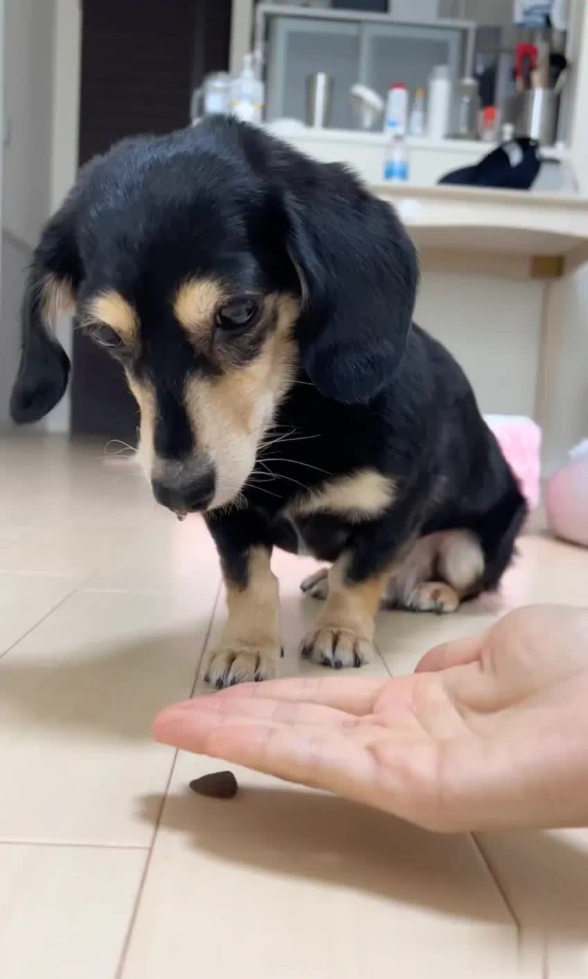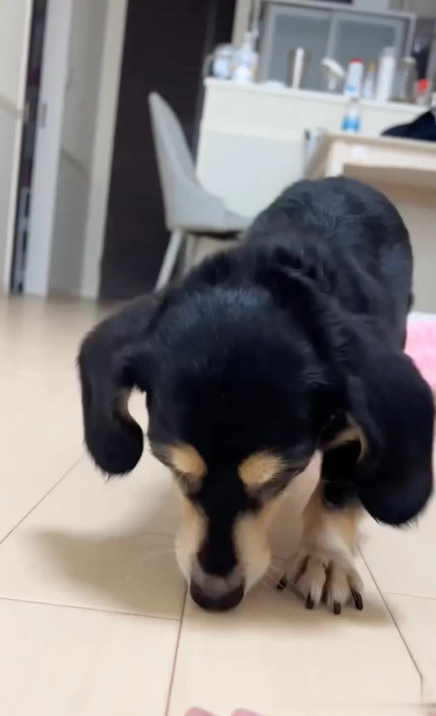 大福是网友@daifuku_dazo所饲养的香肠犬,它怜爱食品,经常和饲主玩合手手游戏,每次答对就能取得奖励。每当零食出现,它的留心力充足被迷惑,视力紧盯着那块奖励。由于太专心,它的合手手速率变得绝顶逐步,这可儿又幽默的进展老是让饲主忍不住大笑。